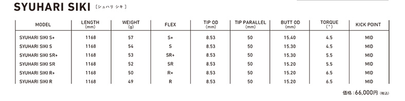 ラインアップはS+、S、SR+、SR、R+、Rの6フレックス。重量帯は49〜57g。価格は1本66,000円。
